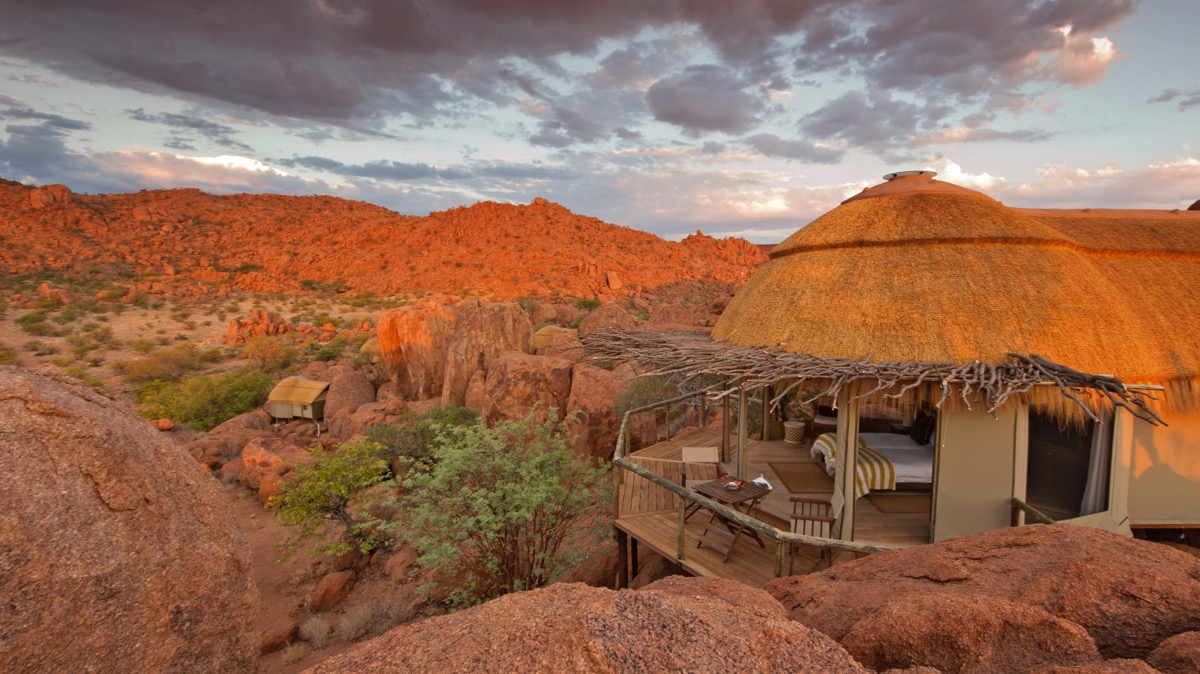 S’il y avait une petite note négative c’est à porter au débit du Spitzkoppen lodge dont la nourriture est vraiment très médiocre et l’accueil très « commercial » (l’activité n’a pas d’intérêt et les guides s’intéressent surtout à leur pourboire !). Par ailleurs nous avions les cabines 1 et 2 situées tout au début de la passerelle, nous mettant aux premières loges des allées et venues. Mais le site est incroyable, surtout très tôt le matin.