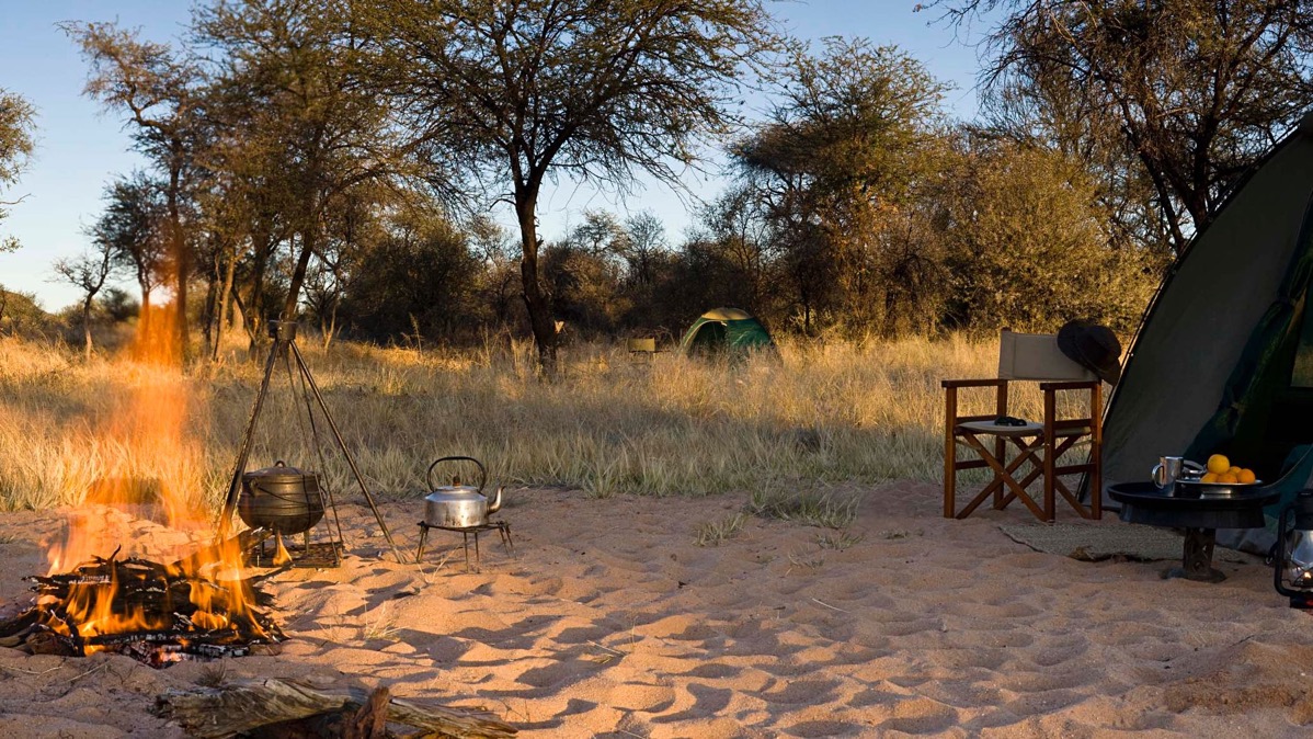 Une fois votre tribu repue d’un excellent petit déjeuner, en voiture pour l’aventure ! Départ immédiat en direction du nord du pays. De superbes termitières s’élèvent petit à petit au dessus des immenses espaces de savane… ouvrez l’oeil car vous êtes ici au coeur du plateau central, là où se concentrent les plus importantes populations de guépards en Afrique Australe. Préparez vous pour cette première nuit sous la tente. Rassurez les enfants quand la nuit tombe et que de la brousse s’élèvent de nouveaux sons mystérieux…